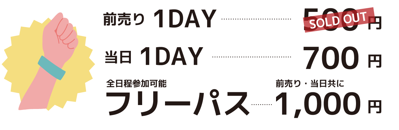 teket(テケト)よりご購入いただき、参加する日に受付でリストバンドをお渡ししますのでお立ち寄りください。