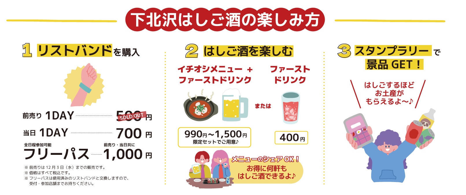 | 2025.12.4 | 本日よりイベント開始!リストバンドの交換・購入は下北沢駅東口・中央口駅前の広場(平日 17:00〜21:00、土日祝 12:00〜21:00) |