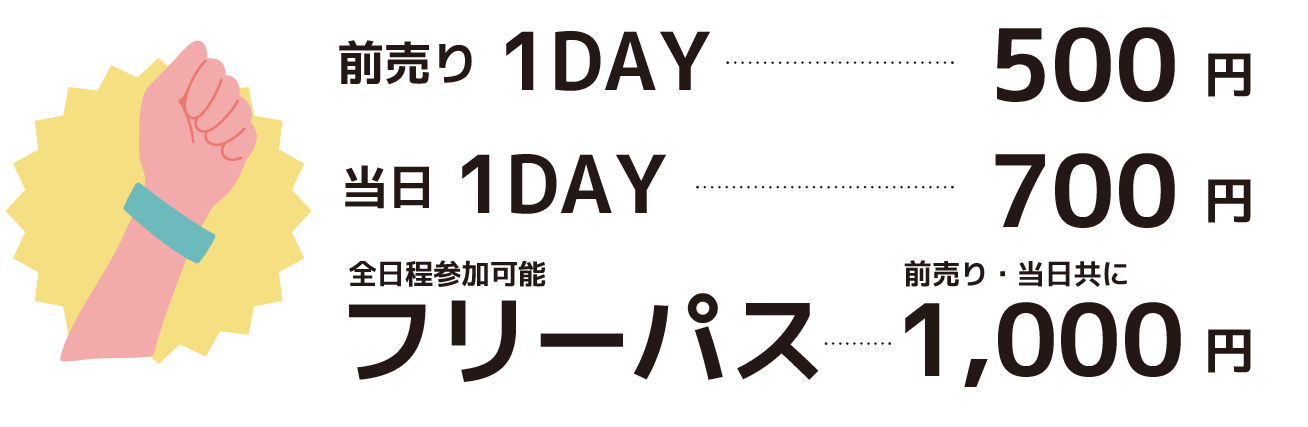 teket(テケト)よりご購入いただき、参加する日に受付でリストバンドをお渡ししますのでお立ち寄りください。