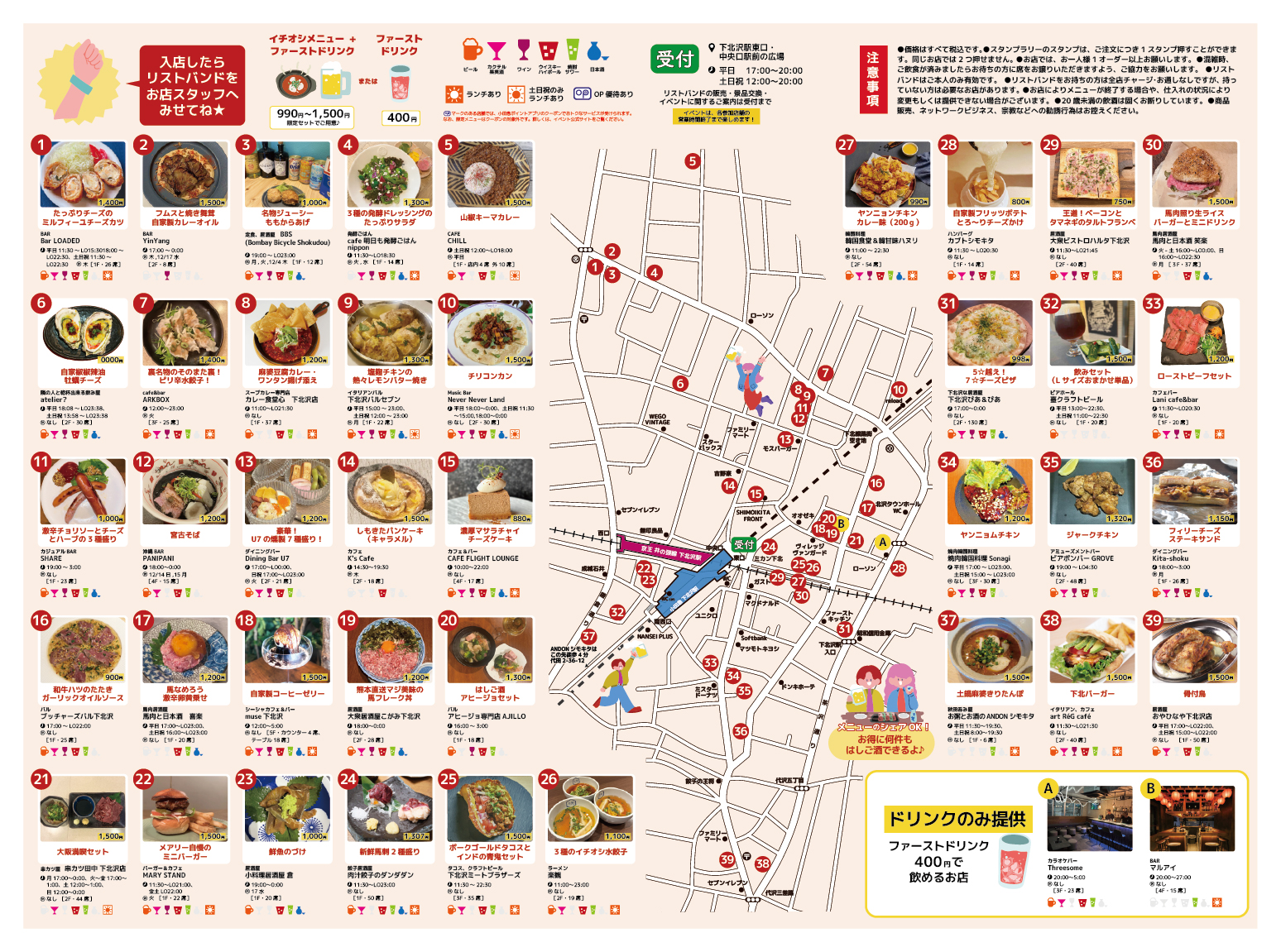 当日は受付(下北沢駅東口・中央口駅前の広場)、参加店舗、teket(テケト) で購入できます。