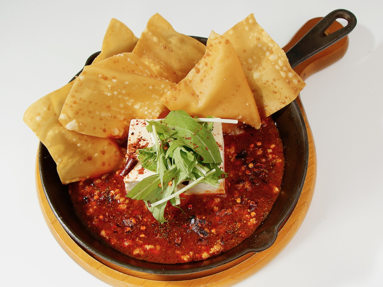 下北沢でも老舗のスープカレー専門店。特製のスパイスで仕上げた麻婆カレーを揚げワンタンにディップして召し上がれ!ライス追加でしめにも最適!