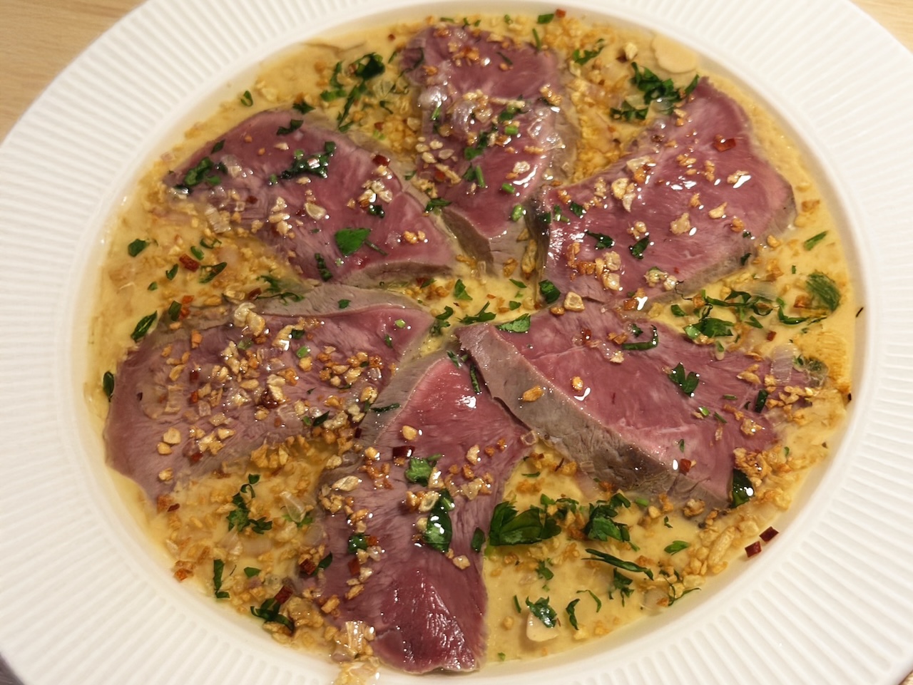 和牛ハツのたたき ガーリックオイルソース(1,380円)